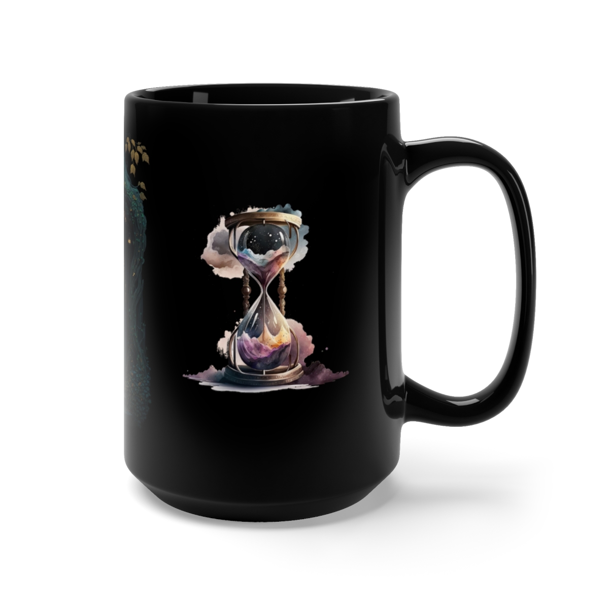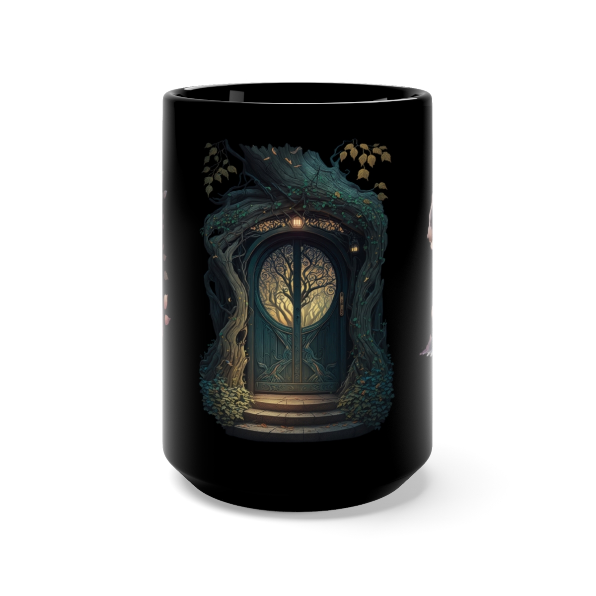 A generous mug for your favorite beverage, but one must always be careful with the gifts of the fae. Music, time and a door leading to the hidden forest. A reminder to make time for joy in your life.