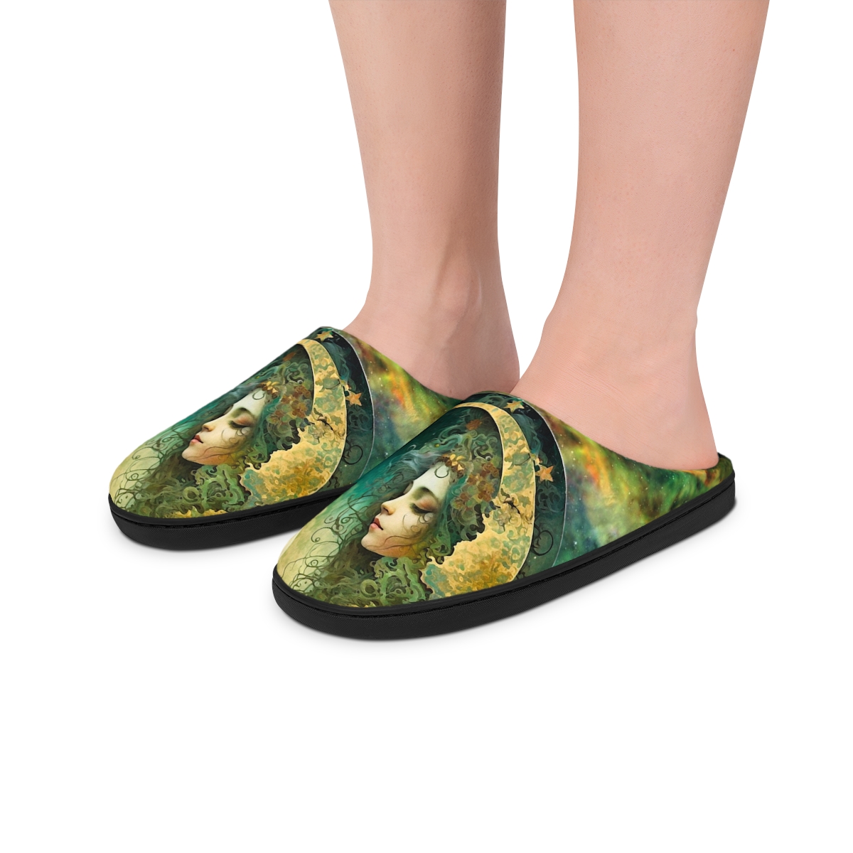 The mysterious Emerald Lady can soothe your aching feet after a hard days work, or welcome you in the morning and keep your feet warm when the floor is ice cold. Each slipper is made 100% with soft, comfy flannel fleece fabric while the outer sole is flexible, anti-skid, and delivers higher durability along with a better grip on shiny floors. Each pair comes with removable insoles, making possible the use of custom foot orthotics.