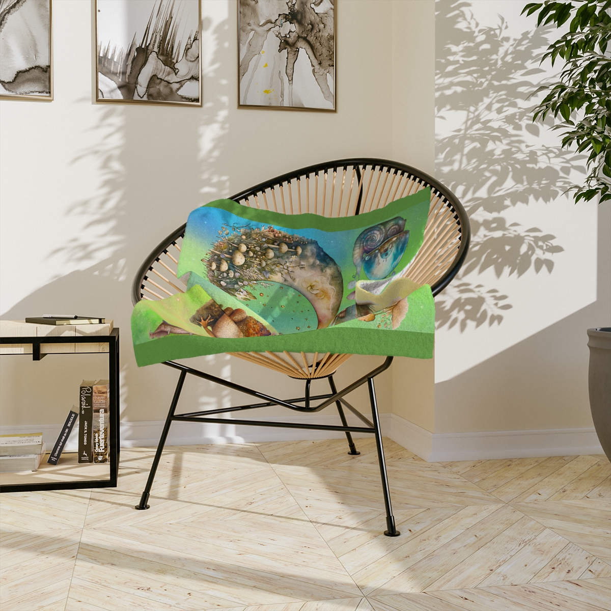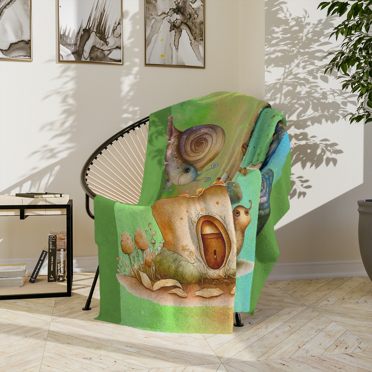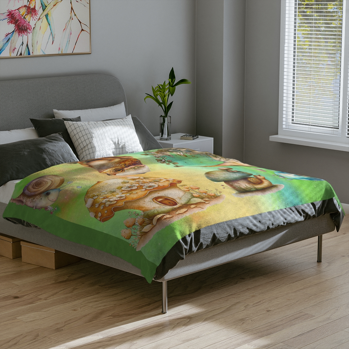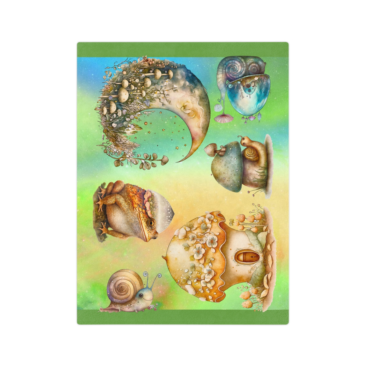 Topsy turvy toadstools, tiddly winks and toes. Slinky, slimey snails slowly slither through the snow.  Well, maybe not the snow.  They are really cute though!  This very soft, velveteen blanket comes in multiple sizes so anyone can enjoy it—toddlers, grown-ups, even your four-legged best friends. The 2″ stitch makes sure the blanket’s borders stay intact. It’s made from a very cozy fleece.